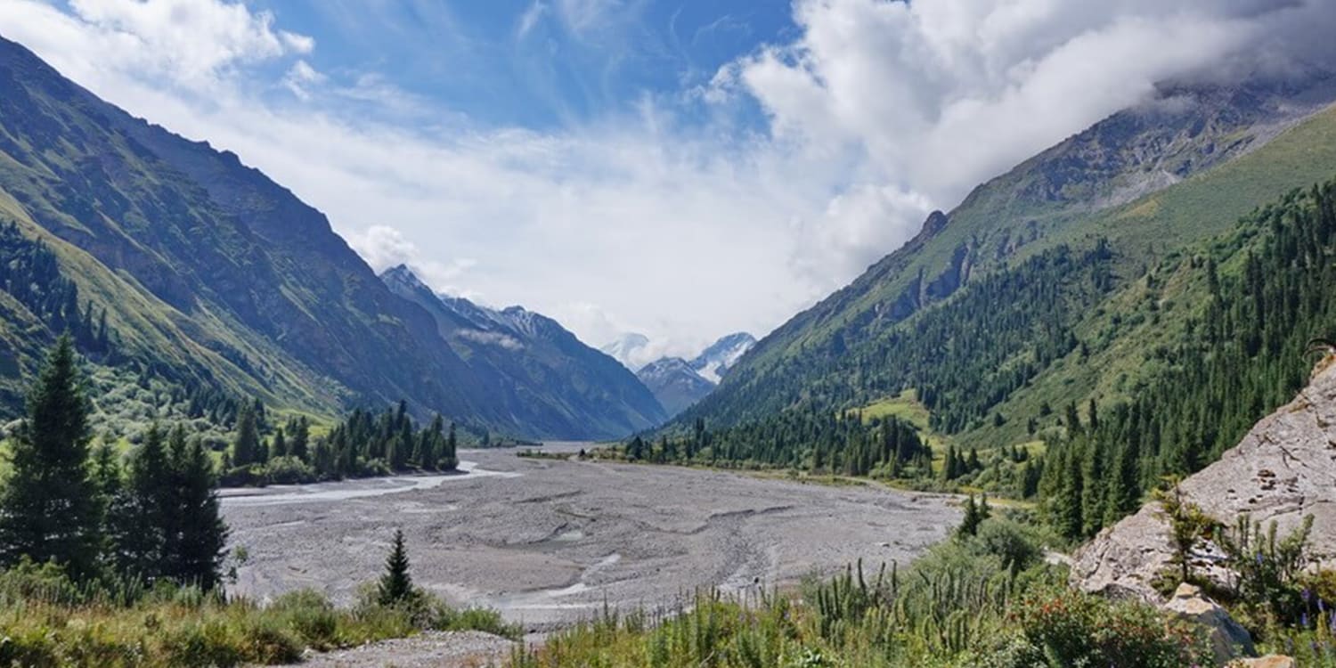 The gorge is located in the Kegen District of the Almaty Region. The gorge’s landscape is striking in its contrasts: from alpine meadows and coniferous forests in the lower reaches to glaciers and rocky peaks higher up. The best time to visit is from June to September (ideally July-August), when the road is passable and the weather is more stable. To visit the border zone, you need permission from the Kazakhstan Border Service, as the gorge is located close to the border with China.