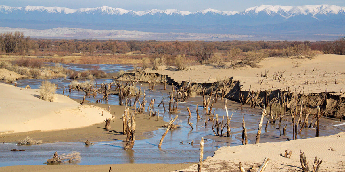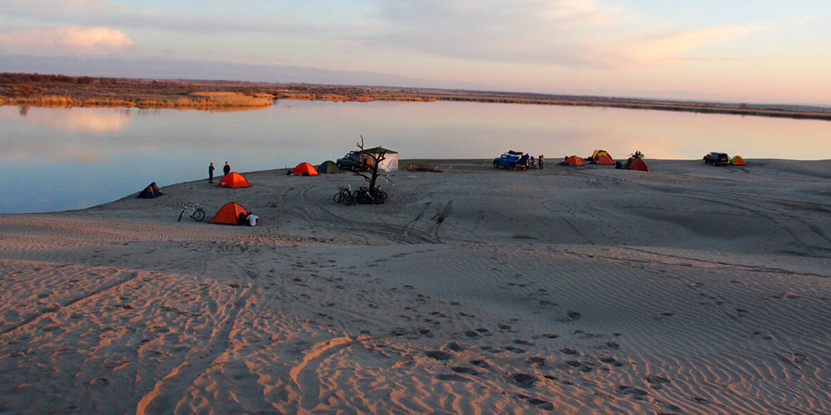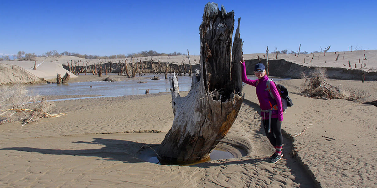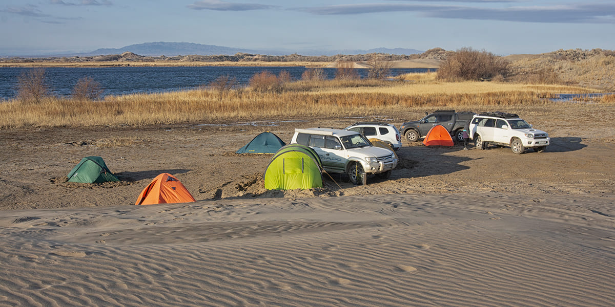 On day 1 we will visit a wooden lake with an overnight stay. The wooden lake got its name because of the dried trees at the bottom of the lake. The lake itself is bordered by sandy beaches, which contrasts beautifully against its background. On the wooden lake you can fish, go boating, swim, watch incredible sunsets and sunrises. It will be interesting for photographers, fishing and hunting enthusiasts. Very beautiful places, you can catch great shots. On the horizon you can see the Altyn-Emel National Park. The lake used to be larger. Due to the fact that sands are advancing from the northwest, the lake is gradually decreasing. Carp, crucian carp, bream and perch are found on the wooden lake. Wild boars, foxes and hares, and wolves, respectively, are also found. There are many birds: ducks, geese, herons, cranes, etc. Therefore, this place is also promising for hunters.