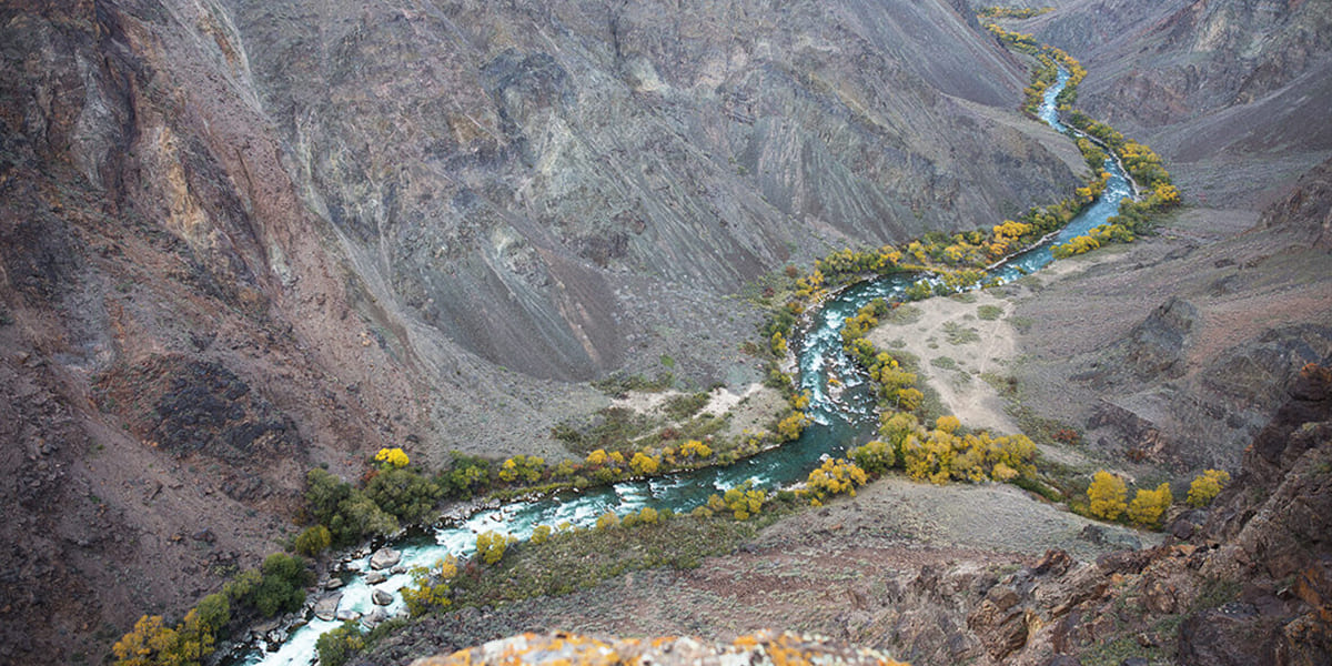 30 мин (13:30-14:00). Спуск к реке Чарын через узкое скалистое ущелье.